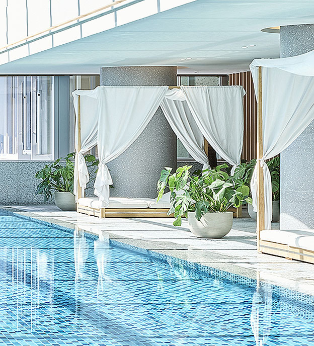 이국적인 분위기로 천국에 와 있는 듯한 인피니트 풀부터 성인 전용 풀, 키즈 풀 등 다양한 재미를 느낄 수 있는 수영장과 추억을 더욱 특별한 기억으로 남게 해줄 그랜드 조선만의 수영용품을 함께 제공해 드립니다.