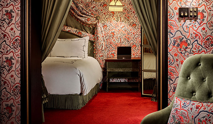 비밀스러운 공간으로 들어가는 듯, 드러나지 않지만 골목 안에 위치한 호텔 입구와 19세기 벨 에포크풍의 화려한 공간은 지루한 일상으로부터의 완벽한 단절과 몰입감 있는 비일상의 순간을 선사합니다.